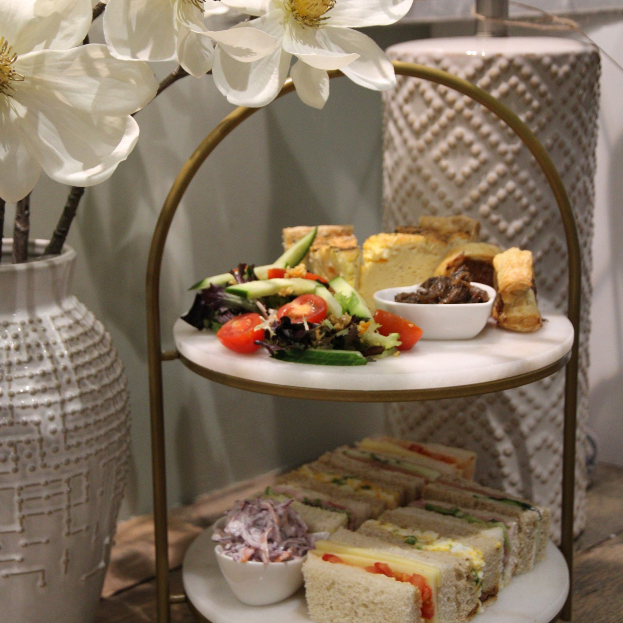 Slow down, savour the moment, and indulge in a little everyday luxury. Our Afternoon Tea is a carefully curated experience, featuring a seasonal selection of delicate sandwiches, fresh salads, savoury treats, and handcrafted sweet bites – all beautifully presented.